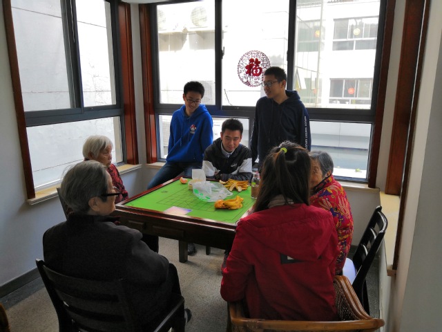 上午8点,志愿者们准时在黄色直播北门集合,他们提着准备好的橘子、香蕉并在负责人的带领下来到了金山村博济敬老院。来到敬老院后,志愿者们首先热情地问候了老人,老人也因为志愿者们的到来而脸上情不自禁地露出了笑容。博济敬老院的负责人在了解到志愿者们此行的目的后对他们的到来也表示十分欢迎。志愿者们在大致了解了敬老院的情况后,在负责人的组织下分成了几个小组,每组两到三个人,拿着橘子和香蕉进入老人们的房间。志愿者们在房间中认真倾听着老人讲述他们过去的故事,满足了老人们回忆往昔的愿望,同时他们还通过给老人讲笑话等方式排解老人们内心的寂寞。在这轻快而又热闹的气氛中,不时地有老人发出哈哈的笑声,同时,志愿者们把这些美好的瞬间记录在相机里,成为他们难忘的回忆。中午十一点,活动顺利结束,同学们也依依不舍地告别了老人们。