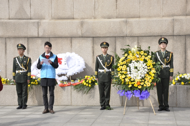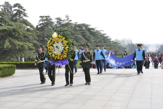的志愿者们一起来到淮海战役纪念塔向英雄敬献花圈,缅怀先烈。