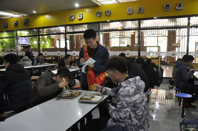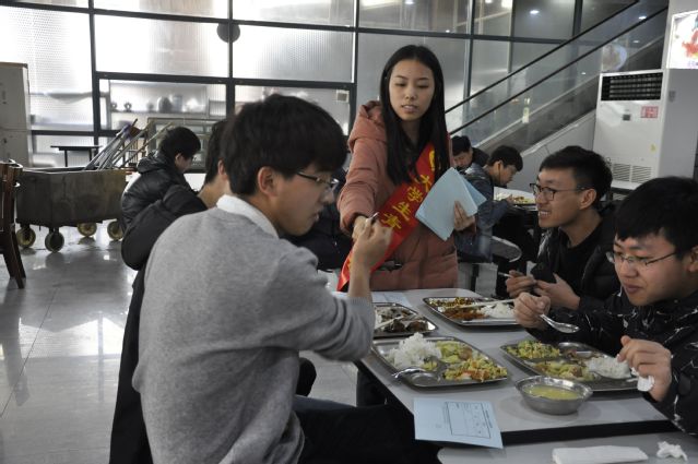中午,参与此次调查活动的30名志愿者准时在一食堂前集合。首先,活动负责人青协维权中心主任菅冰玉给志愿者们讲解了活动内容、流程以及活动过程中的注意点,为志愿者们分发志愿绶带。接着,相关老师将调查表发放给志愿者开始调查,志愿者们积极地向正在用餐的同学讲解调查内容和目的,邀请他们填写调查问卷。每位接受调查的学生都耐心地听着志愿者的讲解,与志愿者交流。他们不仅勾打了满意度选项,还热心地与身边就餐的同伴讨论,在调查表上认真地写下关于饭菜价格、种类、口味等方面对食堂的建议。最后,志愿者将完成的调查表收集整理后交给相关负责人员。