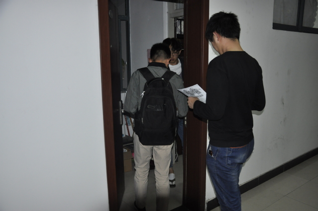 青年志愿者协会的十几名志愿者在桃三宿舍楼开展了扫楼宣传活动。
