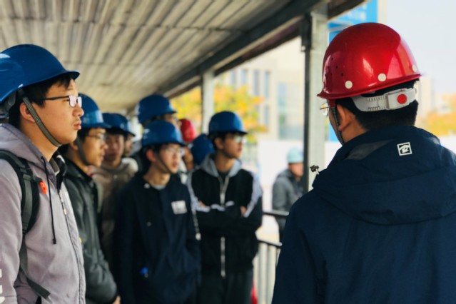 在大学生创新训练中心施工现场,总务部老师向实践团介绍大创中心项目的基本情况和参建各单位的构成,并简要讲解了项目安全管理、文明施工等方面的内容以及工程项目建设的基本流程。之后地铁项目管理人员将同学们带到徐州市轨道交通3号线3标段施工现场,着重从设计标准、施工组织、施工机械、施工方法和文明施工等方面向同学们详细介绍地铁工程建设及管理标准。在此过程中,随行老师结合学生平时课堂所学知识进行讲解,在场同学也积极向其请教现场施工中存在的一些特殊现象,实践活动现场氛围活跃。