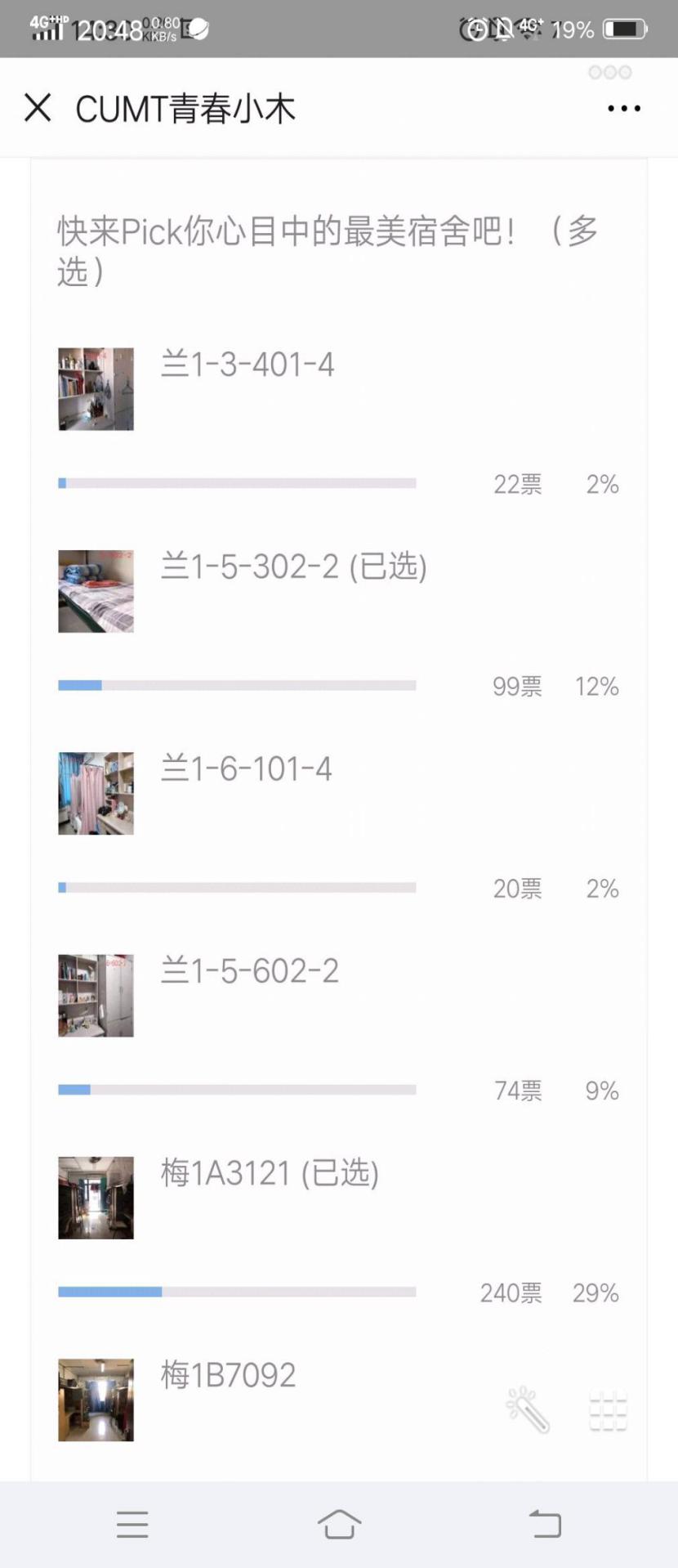 本次活动分为两个阶段展开。第一阶段:2019年1月15日,组织宿舍安全卫生检查;第二阶段:2019年1月15日—1月18日,“最美宿舍”线上微信投票。本次活动共评选出在宿舍安全卫生方面起模范带头作用的四个宿舍,分别是:第一名:梅1A3121(一等奖),第二名:梅2B7142(二等奖),第三名:兰1-5-302-2(三等奖),第四名:梅2B6121(三等奖)。对获奖宿舍给予表扬和奖品。