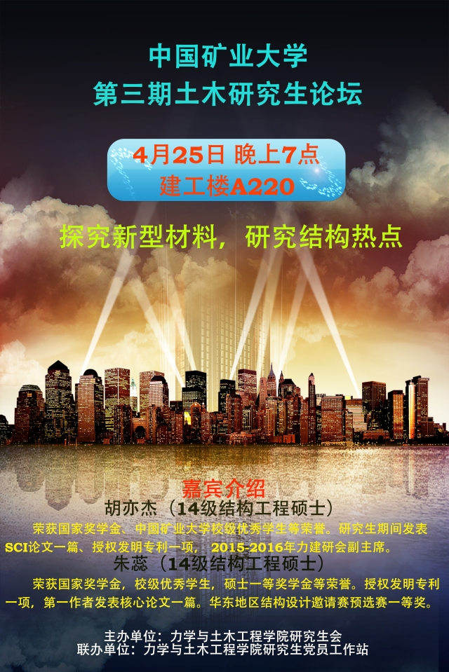 研究生会主办的第三期期土木研究生论坛隆重来袭!本期论坛的主题为: