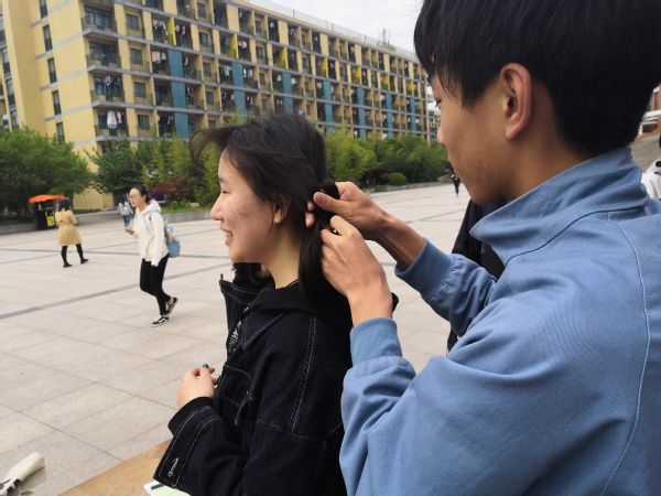 女生部工作人员分别于教学楼、二食堂广场和三食堂广场进行了活动现场的准备和布置,参赛人员八点准时到达比赛教室签到,比赛开始后,参赛队员首先完成了校史知识答题,紧接着赶到二食堂广场进行男生为女生编麻花辫的任务,最后抵达三食堂广场完成“你画我猜”的游戏,成功获取三枚印章并顺利完成任务。