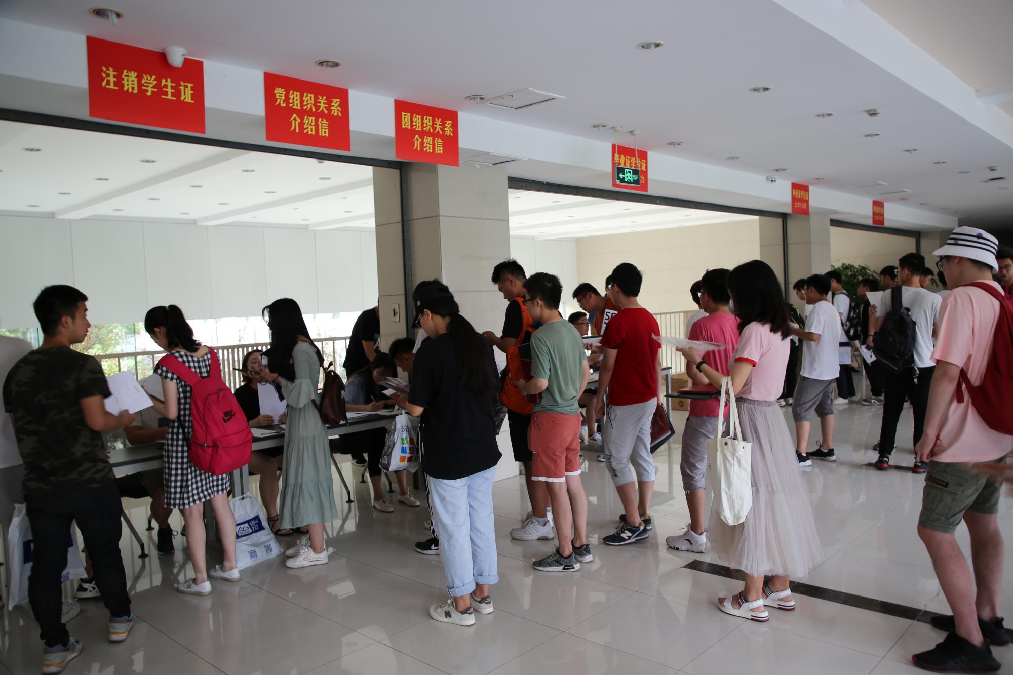 楼二楼进行了联合办公,为2019届毕业生办理离校相关手续。
