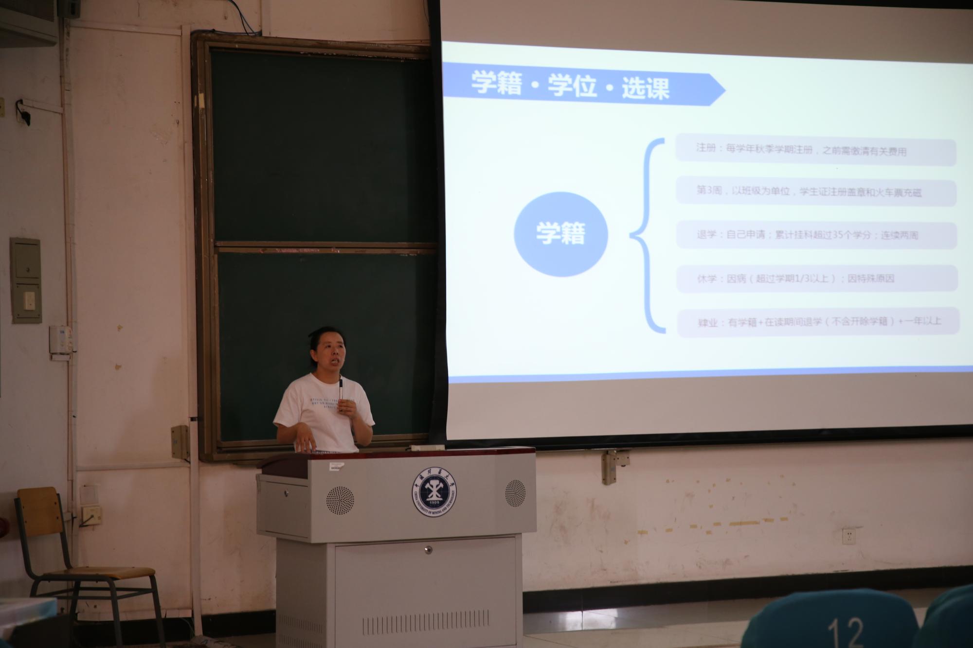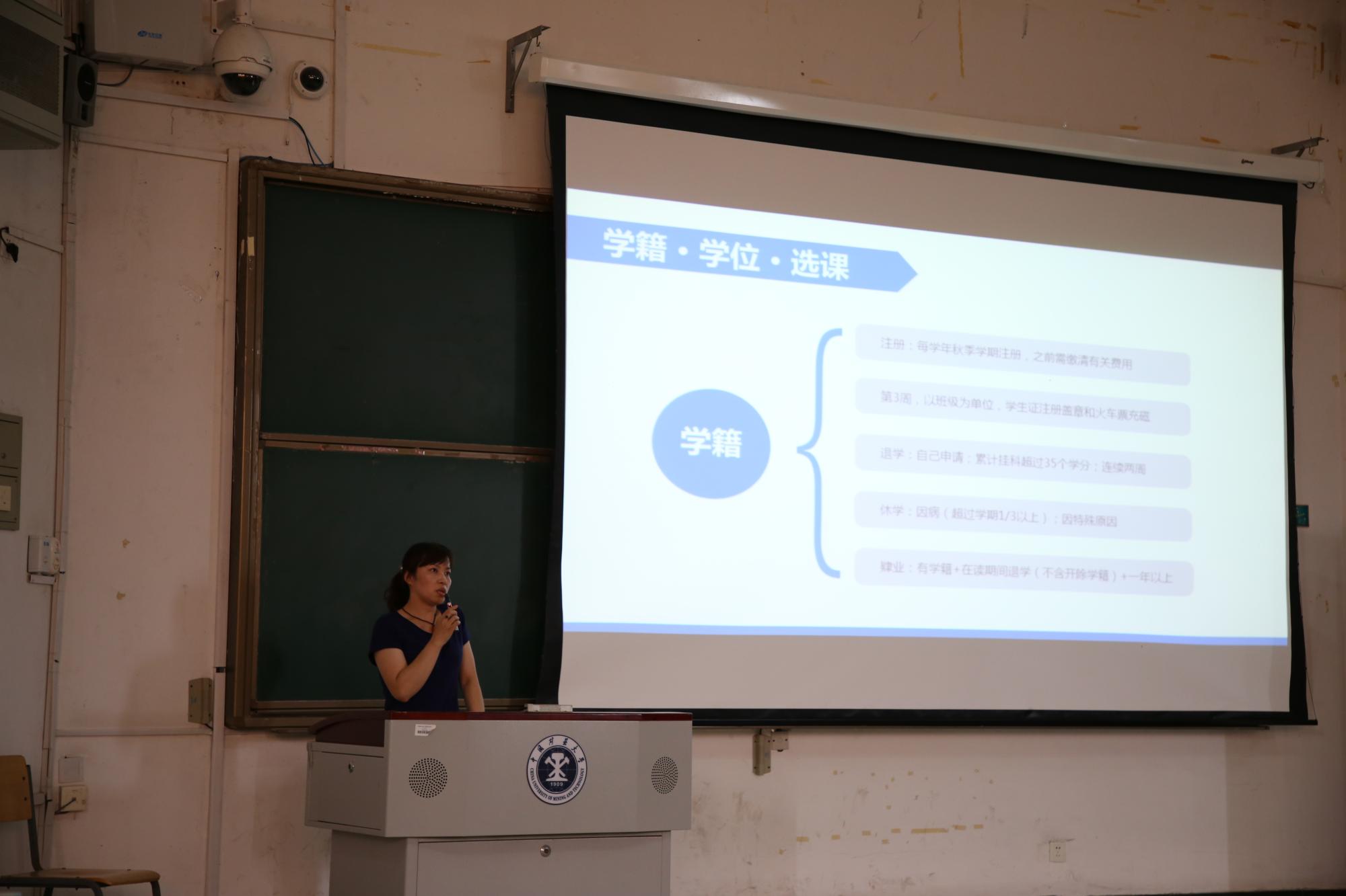 关于学位、学籍、选课等工作的开展流程进行了讲解,并在现场详细解答了同学们的相关问题。同学们也抓住机会,积极提问,解决了困扰已久的问题。老师们表示,往年因某一类别课程学分不够而导致延期毕业的不在少数,而老师们能做的就是告诉同学们选课以及选对课的重要性,为同学们能够顺利毕业保驾护航。