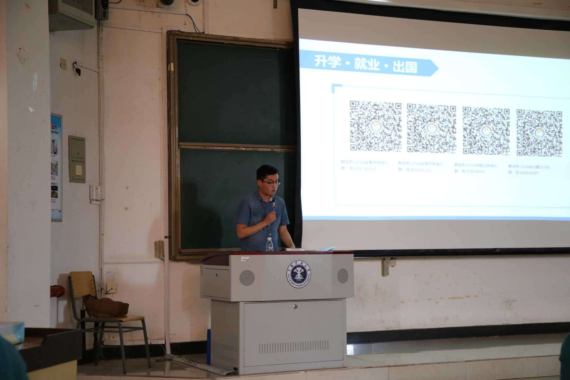 大会伊始,曹鹏老师简单的介绍了本学期各项工作开展情况和下学期的工作安排,并着重对“考研”相关事项与同学们做经验分享,帮助同学们合理规划各学科复习时间。