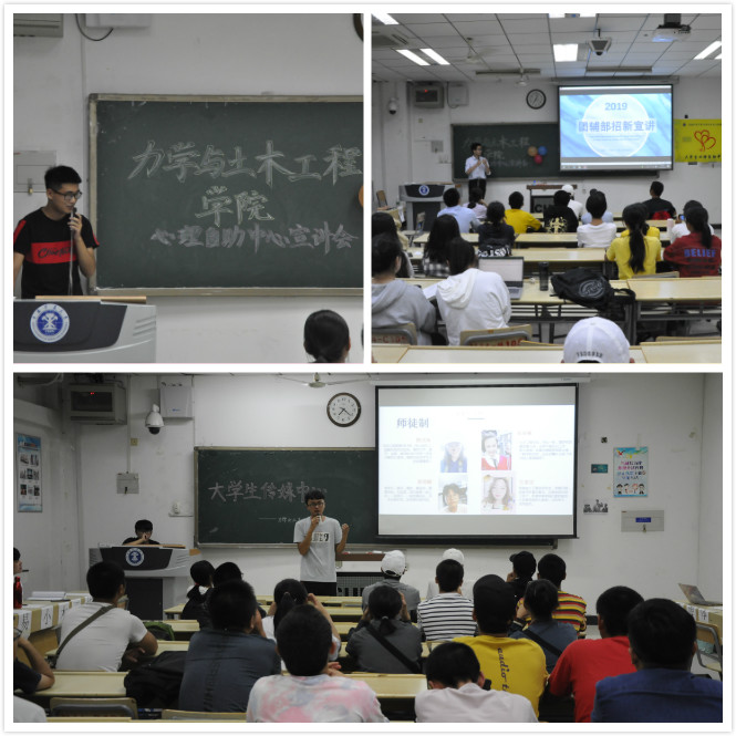团学组织在博学四号楼设立宣传招新点,面向全院本科生及研究生进行招新。本次参与招新活动的有团委、实践中心、宣传部、心理自助中心和社团发展部五大团学组织。