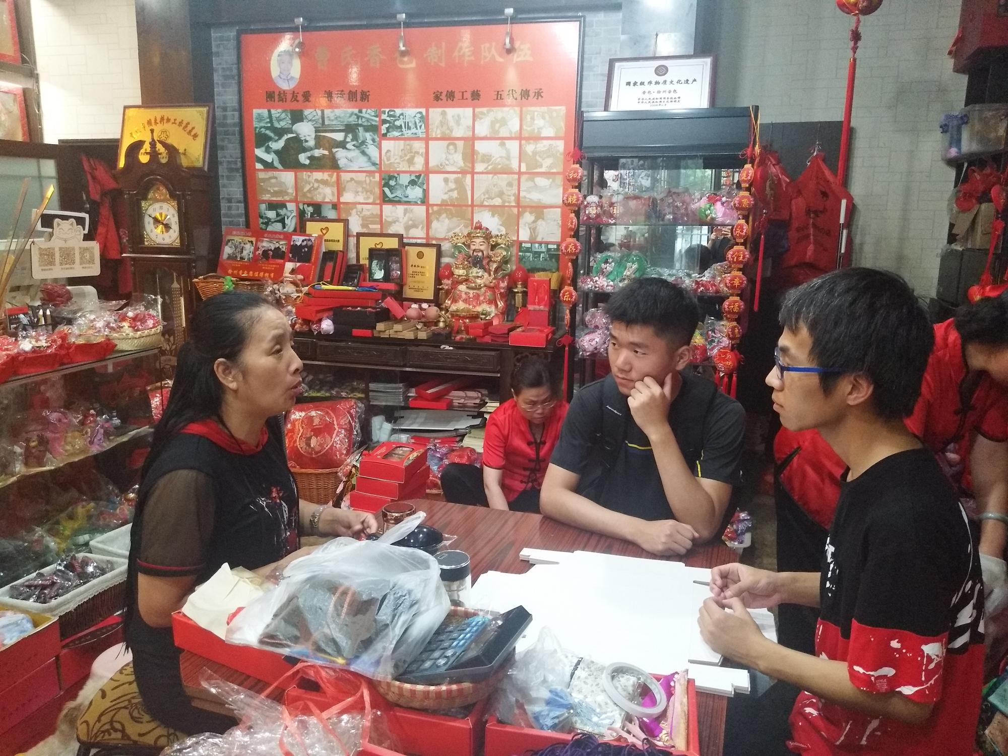 为了深入了解徐州香包的起源与传承问题,香包文化与“非遗”传承调研团于7月24日来到徐州“曹氏香包”专卖店采访徐州香包传承人井秋红。在井秋红老师的介绍,团队对香包有了深刻地了解。