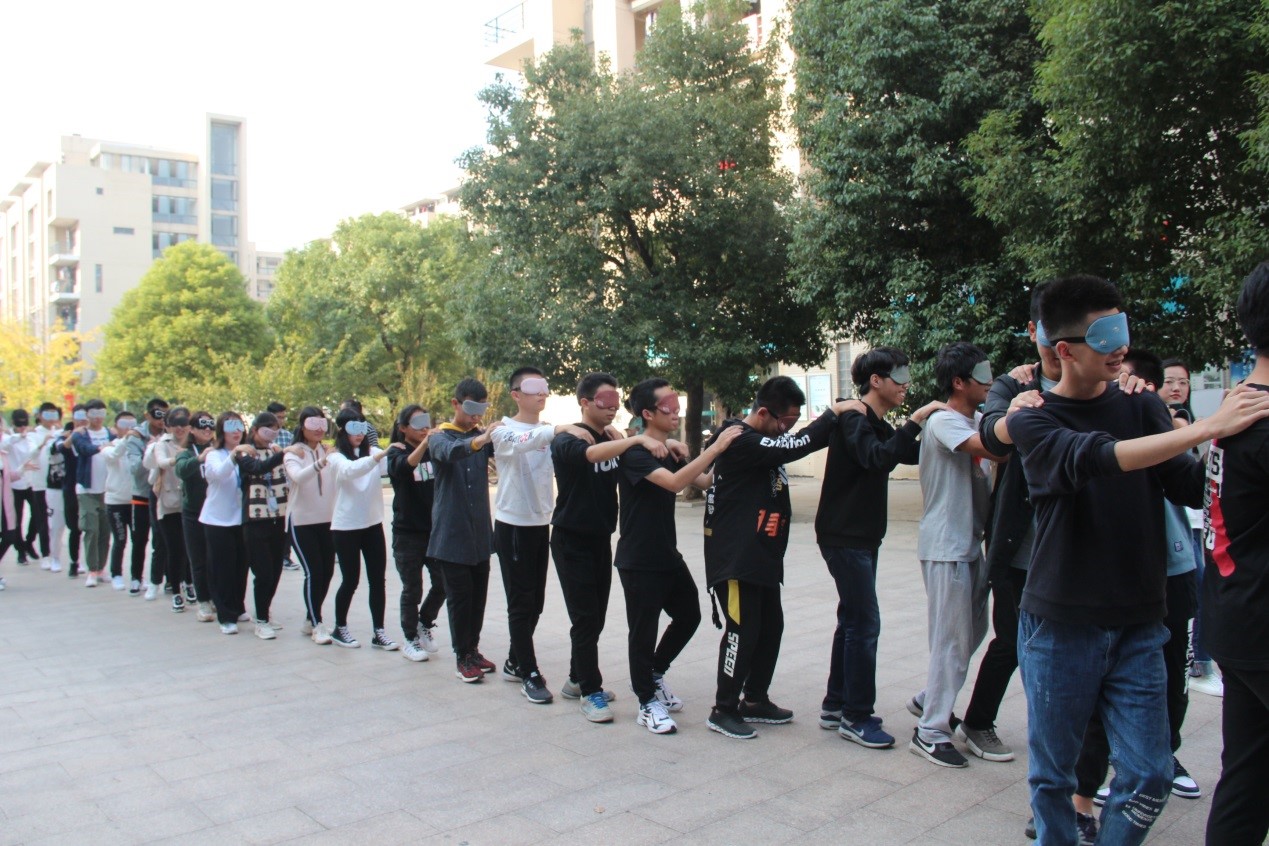 敞开你我心扉,比肩携手同行,相约阳光心灵,共筑美好未来。在秋季健康活动期间,开展这次心理拓展活动——盲行,旨在让同学们在体验互助的过程中,增强对他人的接纳与信任。本次活动不但是一次挑战自我、开发个人潜能的训练,更是对团队精神的升华,也对提高身心健康和构建美丽和谐校园产生深远影响。
