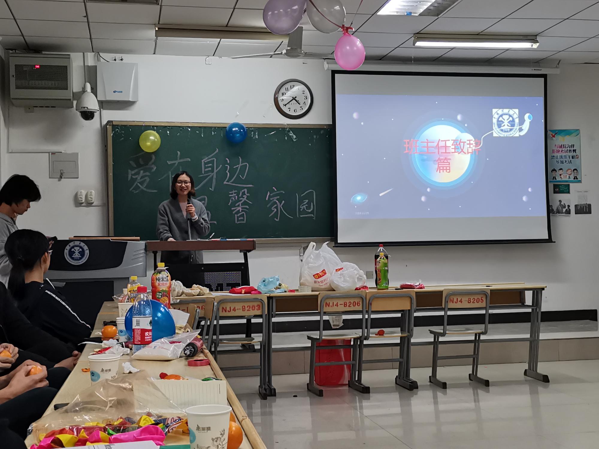 力学类19-01班于博四B-205举行“爱在身边,温馨家园”主题班会。