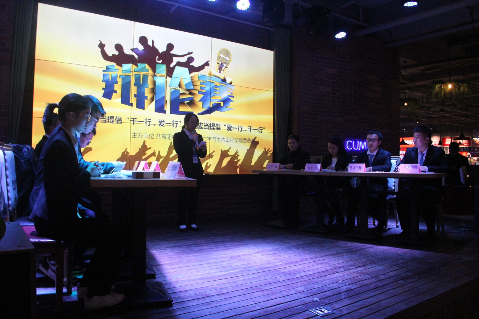 经过前期的激烈角逐,力学19-3班和土木19-14班最终在参赛队伍中脱颖而出。12月6日晚,力学19-3班与土木19-14班于音乐餐厅进行最后的对决。决赛上,双方就“当今时代,是否应当提倡‘干一行,爱一行’”的辩题展开激烈的辩论。在主持人讲解完比赛规则后,土木黄色直播