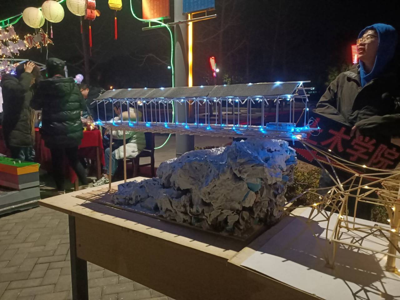 本次花灯主题为“建筑”。首先展示了一个大体育场的大跨结构,运用悬索和桁架,充分展示受力特点,突出现代化结构色彩。其次模拟了一个中式结构的框架,屋顶的流线型,体现了中式对称美,把中国古代传统结构概念“四梁八柱”展示的淋漓尽致。最后还将长廊与雪山融为一体,其中雪山用水和泥沙浆浇筑而成,长廊以其精美的建筑、曲折多变和极丰富的彩画而颇负盛名,将两者结合在一起,给予模型极大的想象空间。这些花灯制作精美,造型新颖,吸引路过的老师同学们驻足欣赏和拍照留念。游艺宫的活动项目也同样十分丰富,土木学子精心准备的桌游、棋类比赛、“时间炸弹”、“一反常态”、“飞镖解密”、“乒乓落地”等趣味小游戏吸引了众多老师和同学的参与,大家都乐在其中,现场气氛火热。