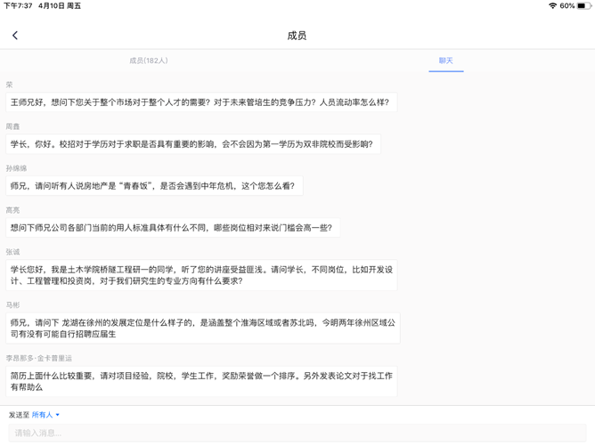 讲座中,王元伟先生根据自己在岗位上的亲身经历,为同学们详解介绍了关于投资的工作内容。王元伟先生认为要想做好地产投资岗需要具备:市场敏感度、对市场的判断、对政策的理解、对全国大势的掌握、同行间的交流以及与政府的交流这六点要求。其中市场的敏感度是重中之重,这也是应届毕业生就业的必备技能之一,不管做什么行业,对市场的深入了解有利于自身工作的精准定位,从而在茫茫的就业大军中脱颖而出。随后,王元伟先生对投资有无专业界限这一问题进行了详细的分析。他提出任何的岗位和专业需要的是一个人良好的品质和认真负责的工作态度,同学不必拘泥于自身所学专业的局限,认真学习不断吸收经验才是能胜任一项工作的关键。会议最后,针对同学们最为关心的在面试环节,王元伟先生做了他本人作为行业内人士较为专业的解答。在视频会议讨论区,同学们积极讨论,王元伟先生一一作答,得到了同学们的一致热烈反响,纷纷表示了对此次土木黄色直播