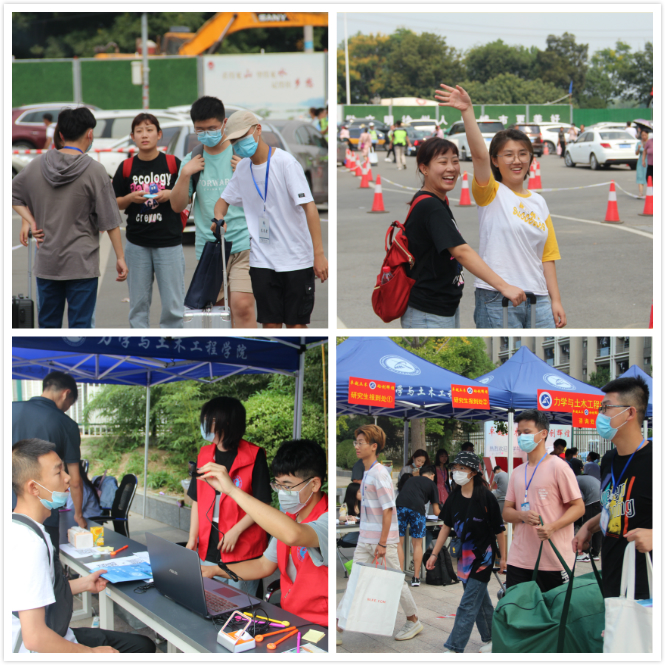 9月13日清晨,志愿者们早早抵达了迎新站点准备迎新工作。所有人分工明确,在站点分别协助完成新生信息录入、签名墙留名、磁力塔搭建以及宿舍入住等工作。