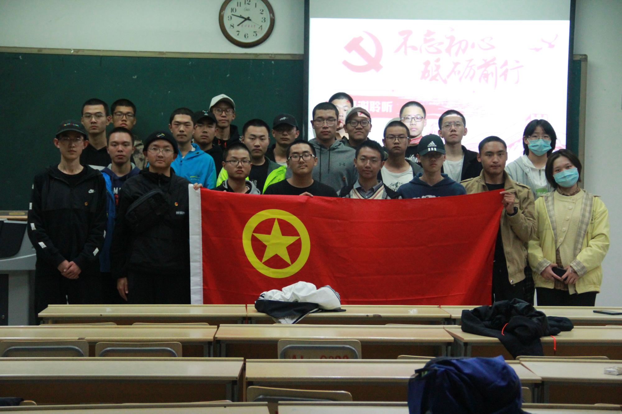 在团支书王硕的主持下,本次活动分三部分进行。首先,他通过观看视频的方式,带领同学们回顾了中国坎坷不平的发展历史,让同学们明白当下美好生活的来之不易,希望同学们珍惜当下。观影结束后,团支书带领同学们一同唱起了《我和我的祖国》,并通过问答的形式加深大家对于中国发展史的了解,以此激发同学们的爱国热情。