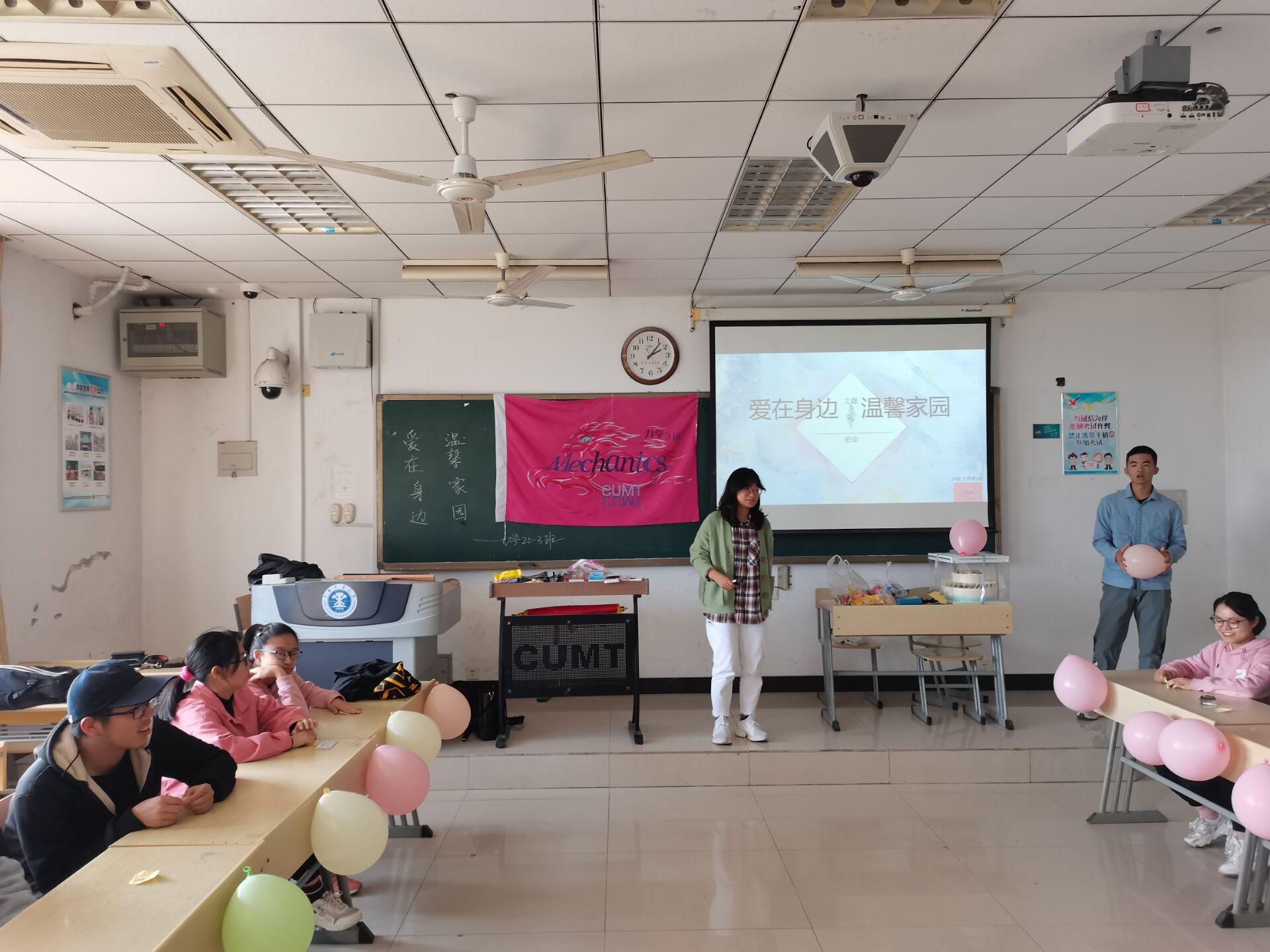 力学类20-03班于博四C304举办了“爱在身边,温馨家园”主题班会活动。力学类20-03班全体同学参与了班会活动,心理委员林颖主持本次活动。