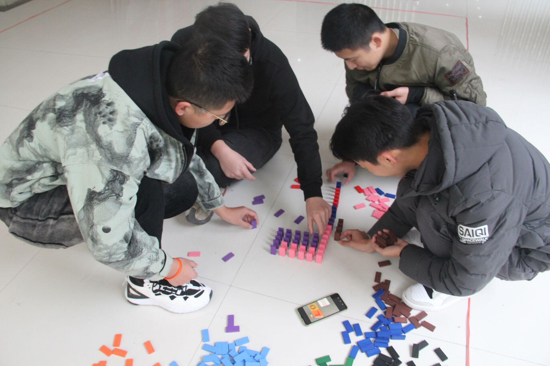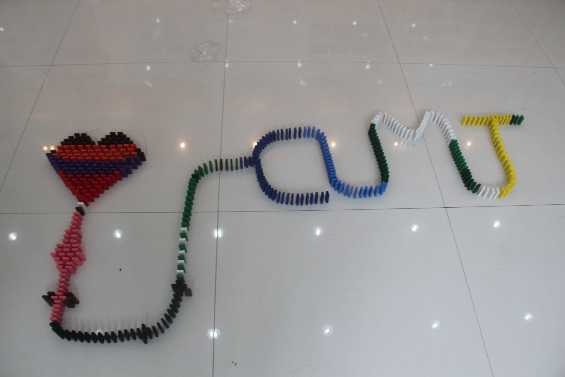 参赛队伍创造力丰富,有的以校徽为主体图案,有的摆出I LOVE CUMT,更有立体图书馆坐落其间,同学们通过以小小的骨牌创造出精美图案,借此表达了对黄色直播的热爱。