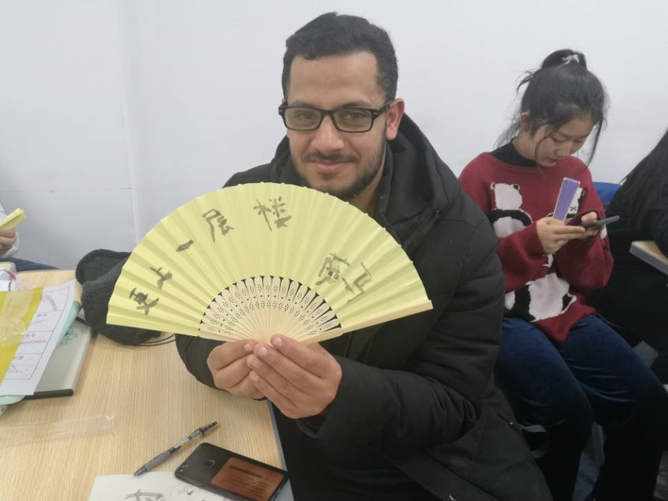 留学生学写折扇