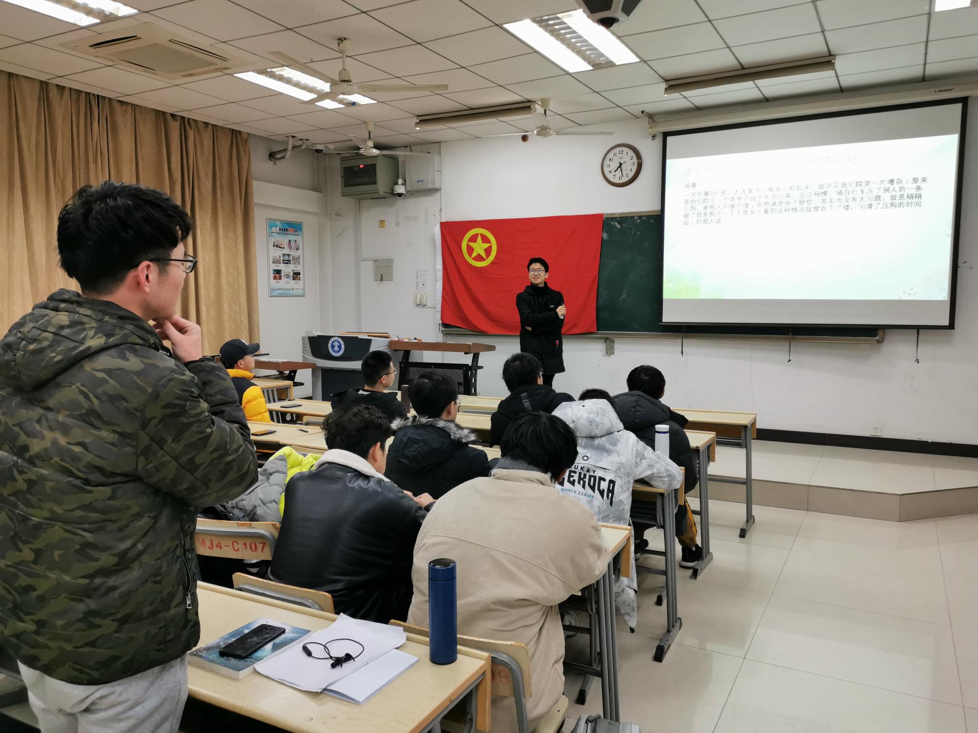 土木工程19-08班于博四C106开展了“学宪法,讲法律”主题团日活动。团支书谭力文主持本次活动。