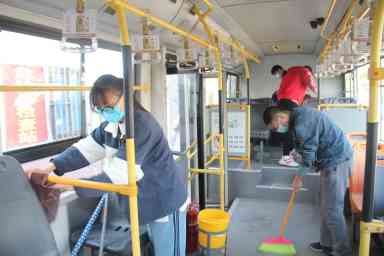 早上八时,参加活动的同学们集合完毕后,在李诗剑同学的带领下,携带抹布、水桶和拖把等工具,对每一辆进站停靠的公交车进行仔细清洗打扫。按照之前的分工,同学们相互帮助,对公交车上的扶手、座椅、玻璃和部分卫生死角都进行了擦洗,顺利完成了对公交站十余辆公交车的清洗工作,得到了公交车司机的表扬和称赞。