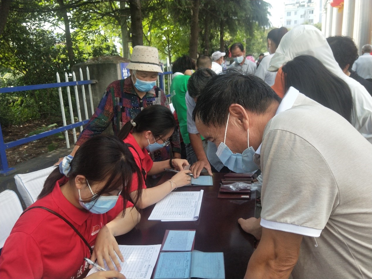 早上九点,实践团成员抵达“吴仁宝精神引领社区”——晓山社区。一行人分组对社区各户户口及疫苗接种情况进行统计。因30日为工作日,前来配合社区进行登记的多为老人,大都不会讲普通话或无法准确报出家人电话号码和家庭具体门牌号等信息,这对于信息统计的准确性和实践团成员的沟通能力均是不小的挑战。虽然信息统计较为困难,但是实践团成员依然耐心询问每一位人员的疫苗接种情况等信息。