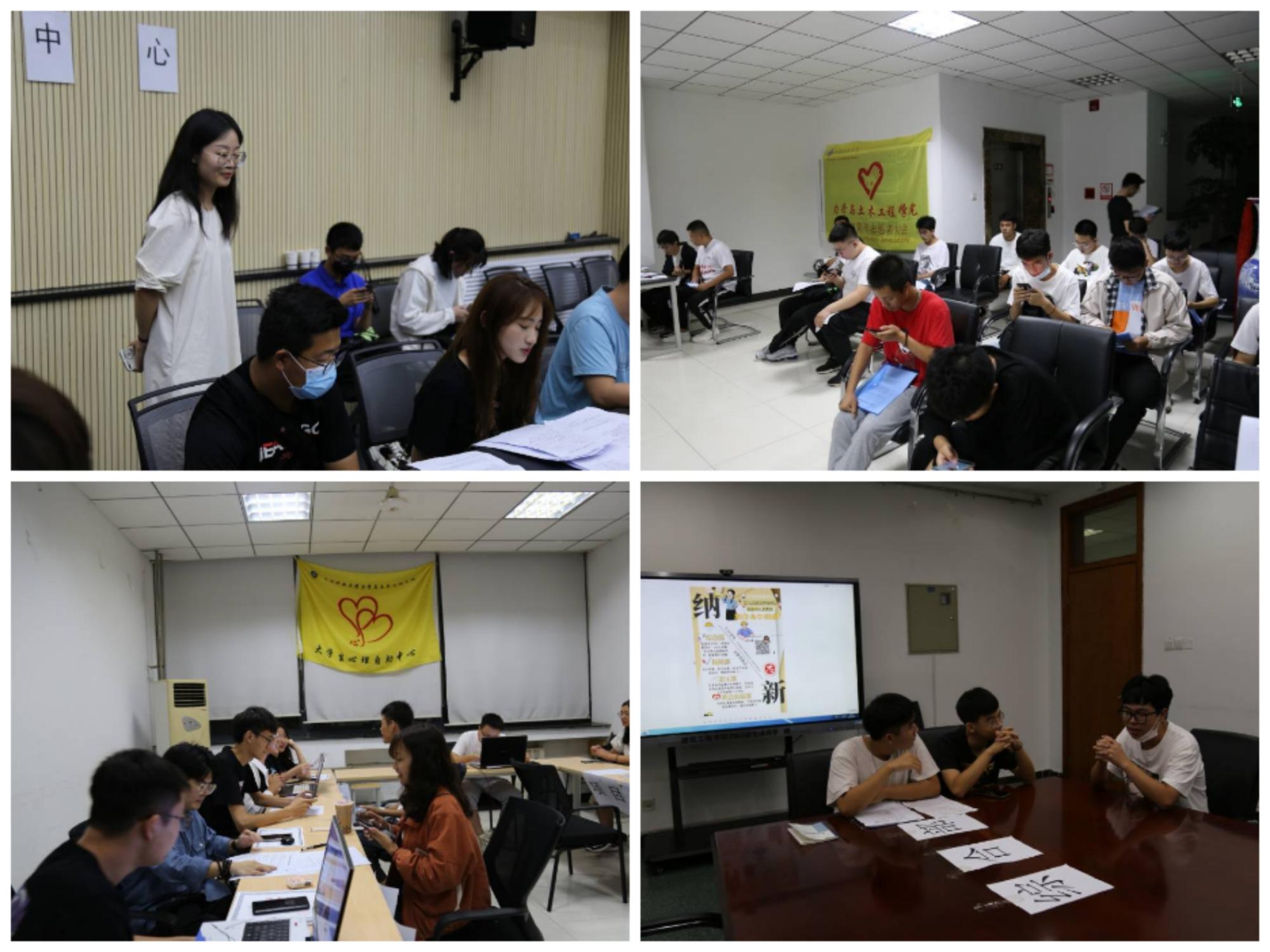 招新活动由填写报名表和面试问答环节组成,晚上七点半,招新活动准时开始,同学们来到土木黄色直播