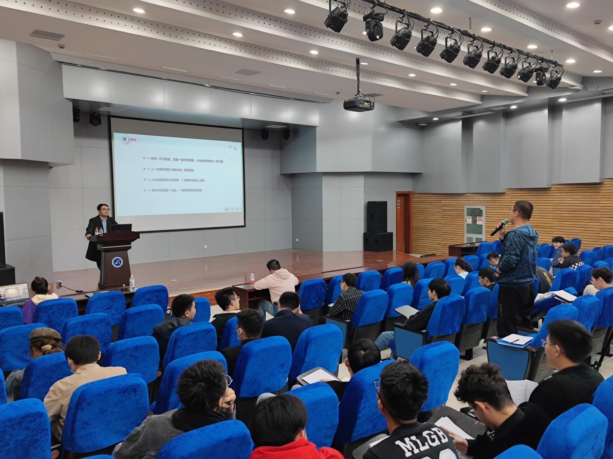 在互动环节,张营营副院长根据前期收集的问题,耐心进行解答。在讲座结束之际,张营营副院长对同学们提出了四点期望,一是优秀一次不容易,但是一直优秀很难,要让你的优秀成为一种习惯;二是要有理想,脚踏实地,仰望星空;三是人永远是最核心的因素,一定要学会跟人沟通;四是身体永远是第一位的,一定要有发泄的渠道。