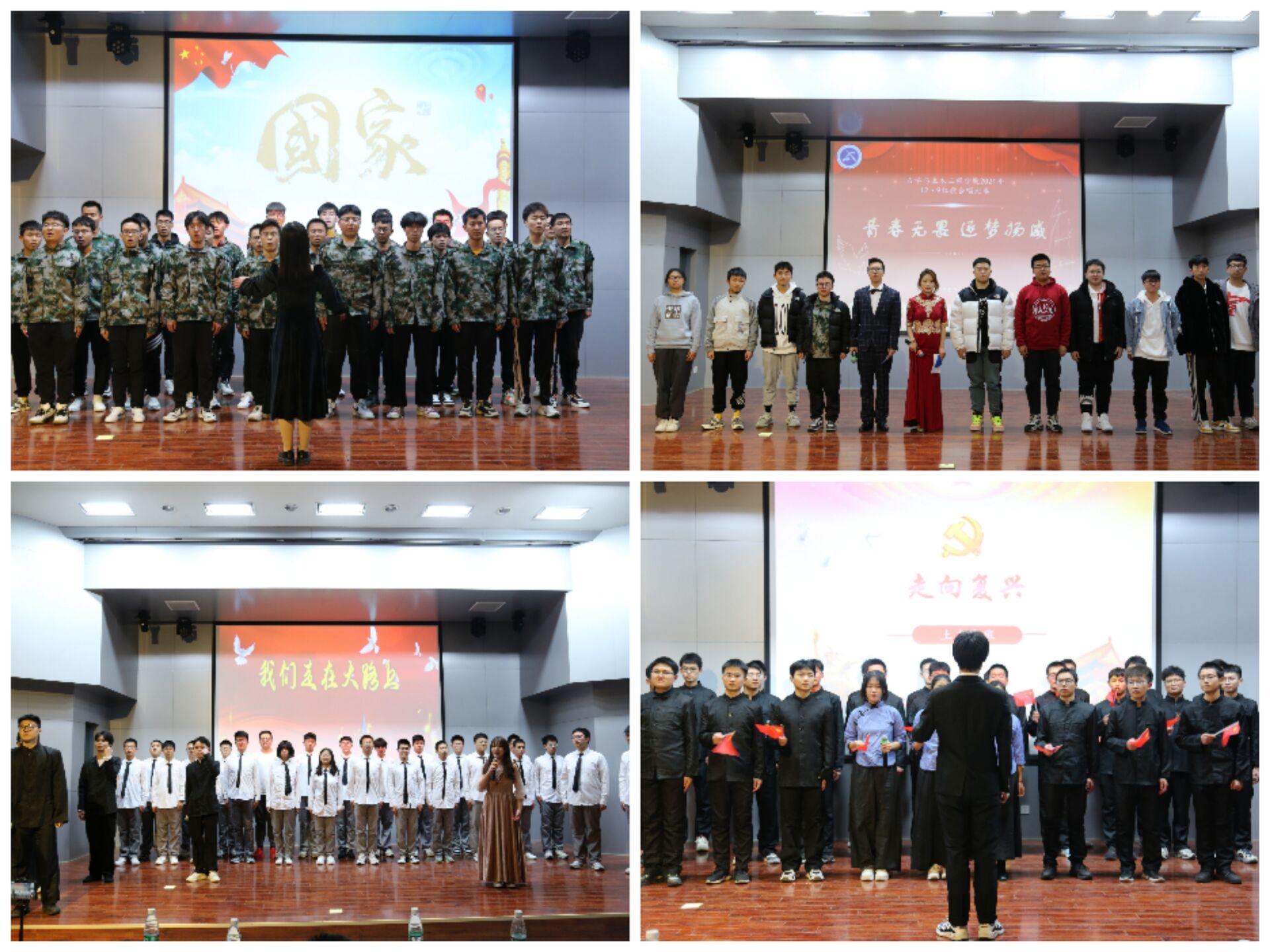 楼A108举办“青春无畏,逐梦扬威”——纪念“一二·九”学生运动胜利86周年红歌合唱比赛。