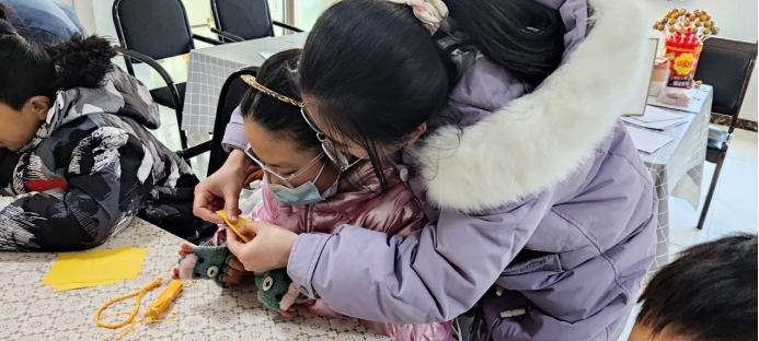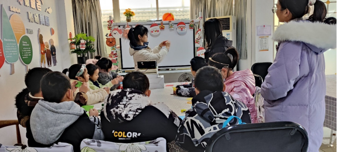 到达下淀社区后,志愿者们首先开展了主题为“动手制作灯笼”的活动。志愿者们耐心地向孩子们讲解了制作灯笼的步骤及注意事项,并帮助孩子们完成了属于自己的独特灯笼。孩子们在动手参与实践的同时也收获了满满的乐趣。接下来,活动的主题转向了孩子们最感兴趣的话题——春节。志愿者介绍了春节的含义及许多相关内容,并以积分的形式开展了以“新年”为主题的知识竞赛,吸引孩子们积极参与。活动过程中许多孩子在关于“过年能干什么”这个问题上,表达了自己过年时想要与父母团聚的强烈愿望。在紧接着的猜灯谜环节中,孩子们展示了自己的想象力,在志愿者的引导下,很快便猜出了灯谜的答案。最后,在志愿者的组织下,孩子们有序地兑换了积分,获得了丰富的奖品。