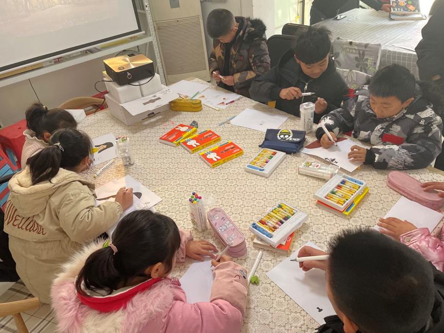 1月2日上午,志愿者到达下淀社区“宝藏小屋”后,先以小游戏与孩子们互相熟悉。随后进入到历史英雄介绍环节。志愿者以孩子心中的英雄为切入点,介绍了“封狼居胥”的英雄霍去病的生平事迹。故事介绍完后志愿者们又组织孩子们以自己心中英雄的形象为主题作画。经过短暂的休息后,进入“Sheep in a Jeep”英语小故事的环节。期间志愿者带领孩子们学习朗读简单的英语句子,同时教导孩子们如何帮助他人与如何寻求他人帮助。本次活动不仅为提升孩子们历史和英语方面的素养埋下种子,同时引导孩子们学习英雄的优良品质,学会帮助他人。