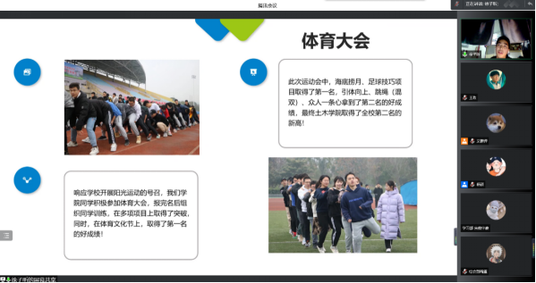 学生会主席团以及各位部长参加本次答辩。由于疫情影响,本次答辩采取线上方式进行。