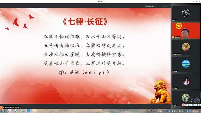 7月22日上午十点,牟虹霖同学为小朋友们带来有趣的美术课程。首先,牟虹霖同学向孩子们展示了各种建筑图片,引出本次课程的主题——透视。紧接着,牟虹霖同学从基础知识讲起,采用类比引入新课,讲解详细,语言幽默、风趣,着力于调动学生的积极性。课程内容丰富多彩,涉及知识范围广,点面结合加练笔,让学生对透视的认识逐步深入。最后牟虹霖同学打开白板邀请小朋友们积极展示课堂成果,孩子们积极配合老师,展示自己的画作。下午四点,陈鸿炜同学带来富有意义的红色教育课程。陈鸿炜同学以“学习新思想,争做新青年”为主题,向孩子们讲述红军长征的过程及其历史意义。陈鸿炜还带领孩子们学习了毛泽东主席的《七律•长征》,以通俗易懂的话语向孩子们讲解该诗的含义,引导孩子们学习其中的长征精神。最后,陈鸿炜以《金色的鱼钩》小故事作为结尾,顺利结束了本次课程。