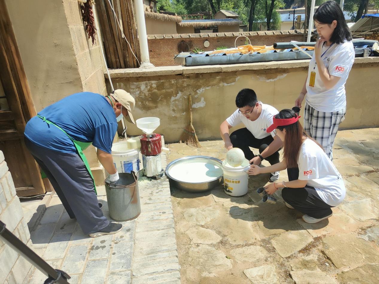 南泥湾大生产虽然已经过去多年,但新时代“大生产”运动在南泥湾这片土地上每天都在上演。在甘泉县道镇乔庄村,实践团成员采访了村干部,就乡村建设情况进行了解。实践团了解到,近年来在国家乡村振兴宏观政策和当地政府的政策扶持下,乔庄村经济发展逐渐转型,由单一的农业生产向农业生产与旅游开发相结合的经济模式转变。村里建起了观光水稻种植基地、豆腐制作体验基地等,经济状况越来越好,人民生活水平也不断提高。同时,村里十分重视农村生态环境保护,贯彻“绿水青山就是金山银山”的理念,重保护环境,同时利用美丽的自然风光发展旅游业,实现了可持续发展。实践调研过程中,实践团成员到农田学习农业技术,调研农业发展;到豆腐坊动手体验豆腐制作方法,品尝自己制作的豆腐豆浆;到生态旅游区参观,感受乡村的美丽景色。经过实践,团队成员对于延安革命老区的乡村建设情况有了更加清晰的了解,对国家乡村振兴政策有了更加深刻的认识。