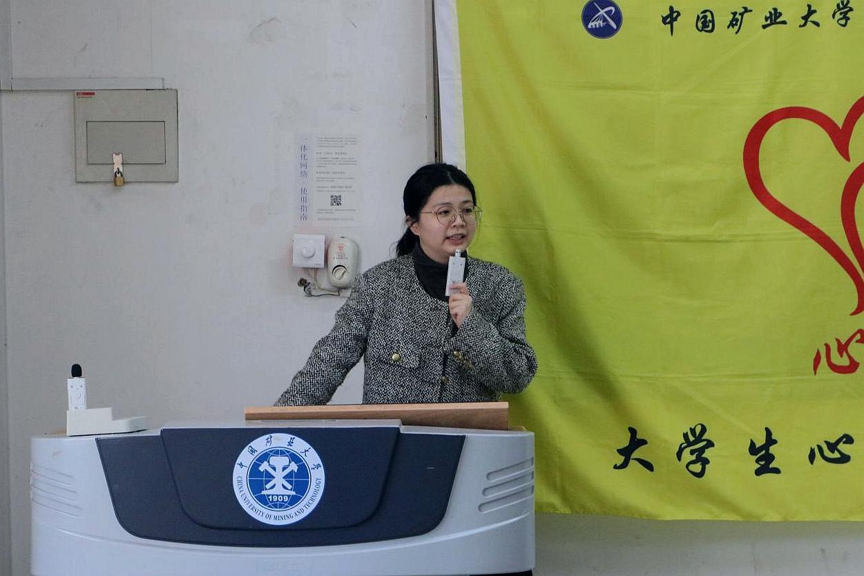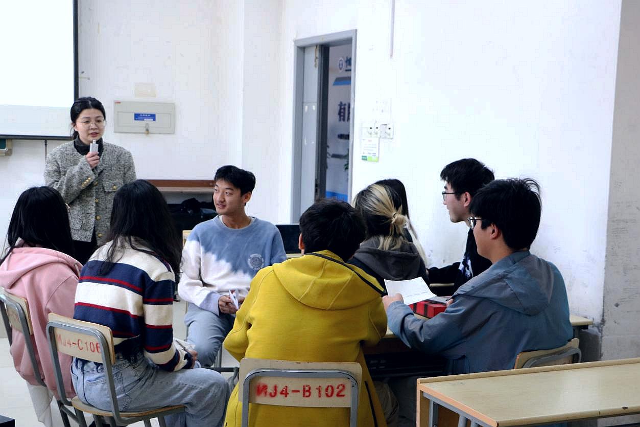 大学生心理自助中心指导老师谢涵。首先,谢涵老师带领同学们进行了一次团辅活动。在团辅活动中,谢涵老师组织同学们开展了许多有趣的小游戏,如“按摩接龙”“你写我猜”等。每一个小游戏都有助于增进成员们之间的熟悉度,让同学们体验人际沟通的重要作用,更好地理解团辅活动的意义所在。接着,谢涵老师列出了一些团辅活动的理论知识和应用技巧,讲解了团体辅导的功能、构成要素、应用领域等。谢涵老师指出,开展团体辅导要选择合适的场所,做好充分的准备工作,作为团体领导者还要掌握多方面的反应技能和互动技能等。谢涵老师还结合先前开展的小游戏进行了进一步的阐释,帮助同学们更好地掌握团辅活动相关知识。最后,谢涵老师进行了提问,参会成员们分享了此次活动的感受与收获。