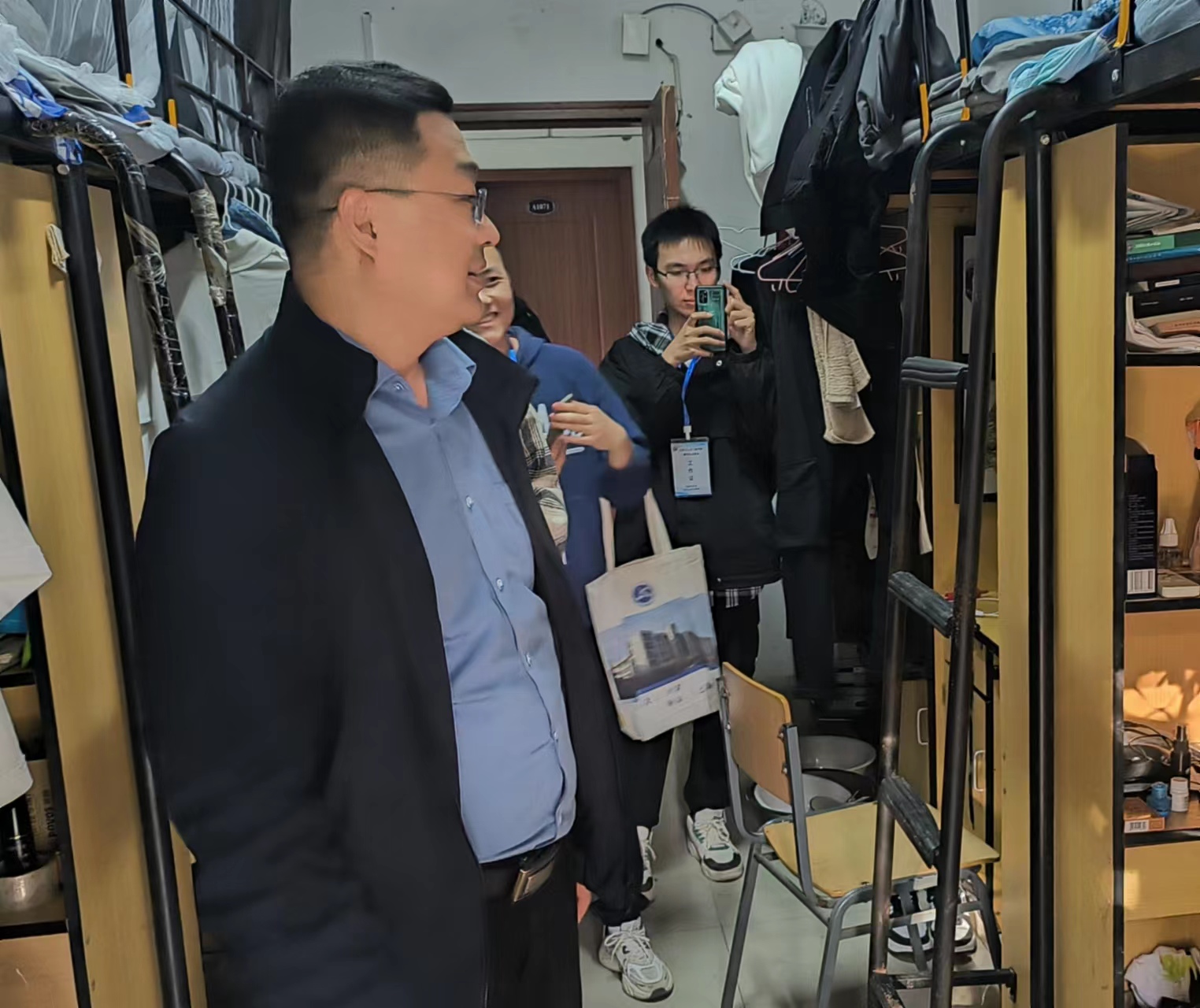 此次检查内容为南湖校区研究生宿舍的卫生情况及用电安全情况。此次检查结果整体情况良好,未发现违章电器等不安全因素。但仍有部分寝室存在未按要求张贴信息卡、宿舍桌面杂乱、无人插电等情况,检查人员对存在以上问题的宿舍提出了整改措施并定期复查,希望同学们积极配合检查人员,同时养成良好的卫生习惯。