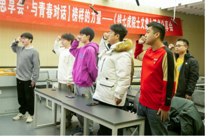 活动开始,在主持人游鸿源的带领下,新团员们一起合唱国歌和团歌,用歌声表达对共青团的热爱和忠诚。接着,游鸿源宣读入团成员名单,并由张泽杨和王宇祺两位团员为新团员佩戴团徽,这是他们作为共青团一员的标志,是他们身份的象征。随后,新团员们面对团旗,进行庄严的宣誓,表达自己永远跟党走的决心。在宣誓仪式结束后,新老团员代表进行发言,共同表达了对共青团未来的美好祝福和殷切期盼。最后,游鸿源对本次入团仪式进行总结,鼓励各位新团员不断进步和成长。