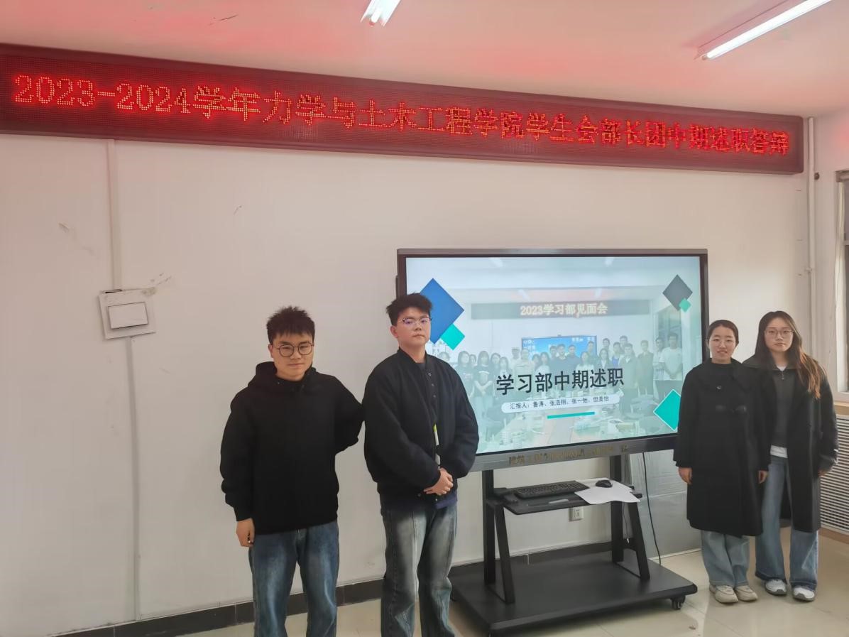 学生会部长团在桃三A518进行了中期答辩。学生会主席台成员、各部门负责人参加会议。