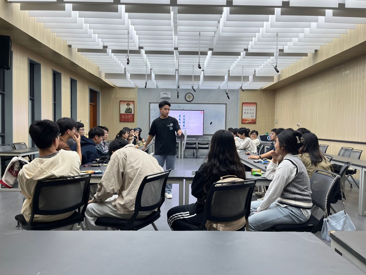 在主持人的带领下,各位同学互相介绍着自己,大家在通过简单的自我介绍后都有了初步的认识。随后步入了各式各样的游戏环节。其中,破冰游戏环节通过轻松有趣的互动游戏,帮助同学们打破陌生感,增进彼此间的了解;团队挑战环节则通过一系列充满趣味与挑战的任务,考验同学们的团队协作能力,加深彼此间的信任与配合,同时这也是一个让大家展示自我的机会,加深各自的印象。