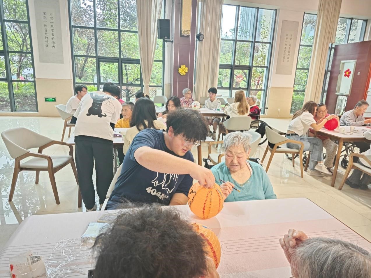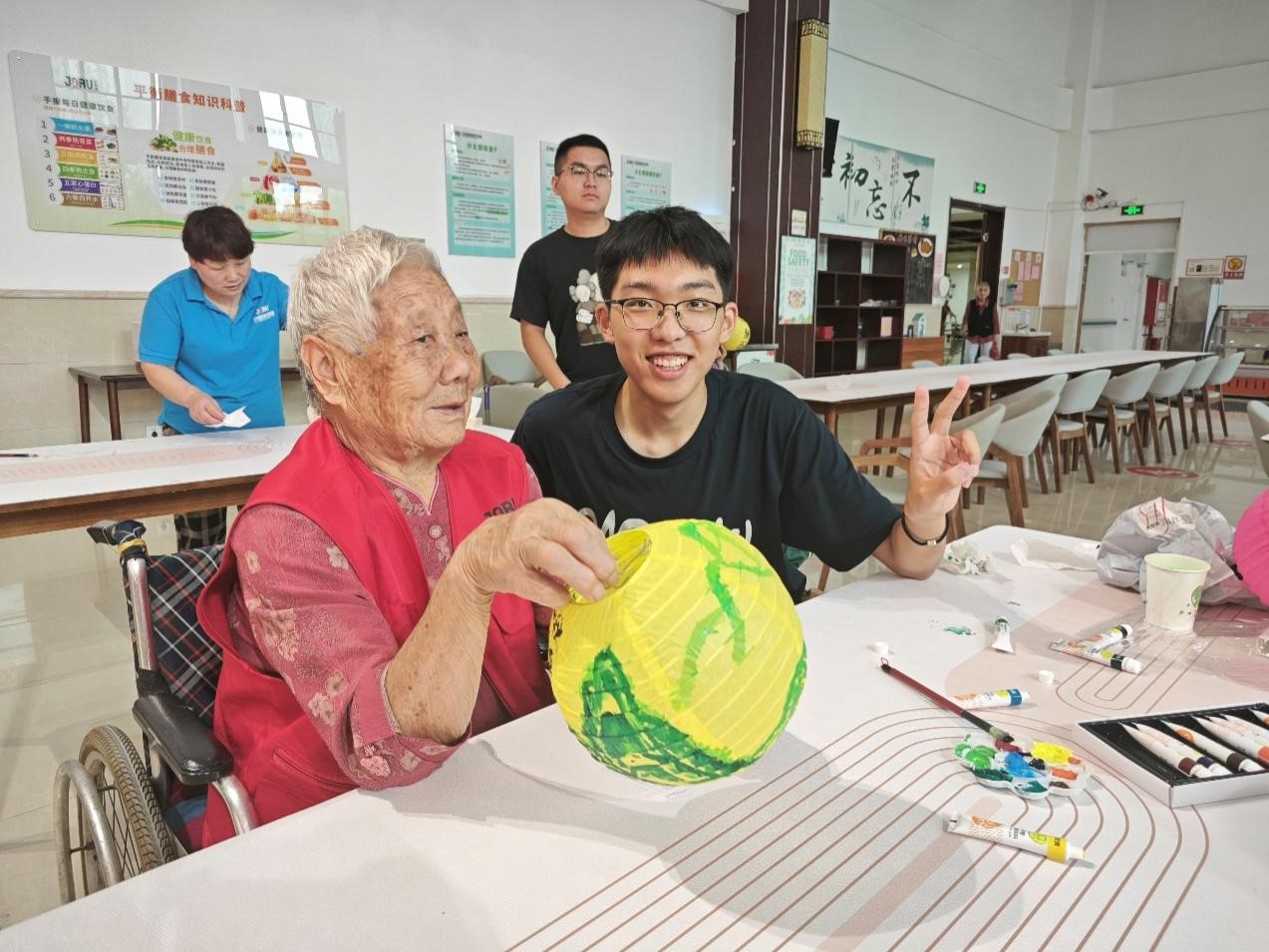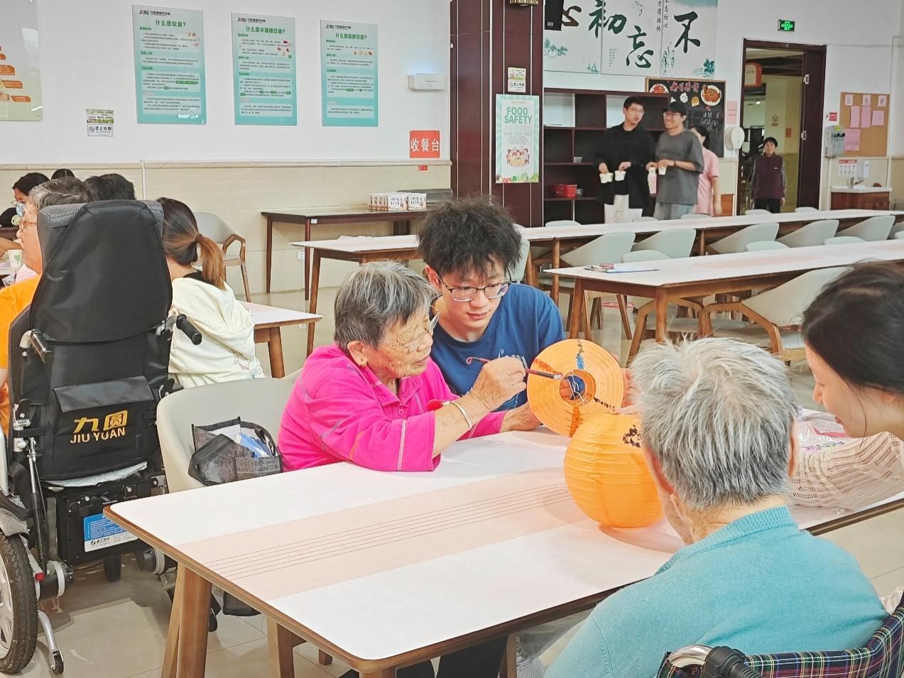 在活动中,志愿者发挥创意灵感,和老人们携手制作各种灯笼模型,如玉兔灯笼,花卉灯笼等。从简单的撑灯笼、贴贴纸到繁琐的装灯芯、粘灯杆,志愿者与老人们互帮互助、相互鼓励。在制作灯笼过程中,志愿者们认真倾听老人们讲述过去的故事,与他们一起回忆青春的美好时光。在青年志愿者的陪伴下,老人们脸上洋溢着幸福的笑容,养老院里萦绕着快乐与爱。
