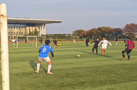 研究生会在南湖校区第二田径场举办了研究生学术文化节系列之“明德惟馨·导学共进”研究生师生足球赛。