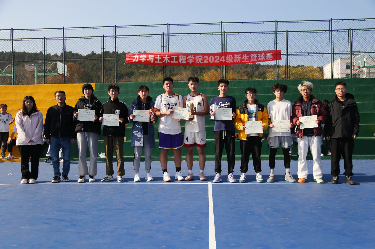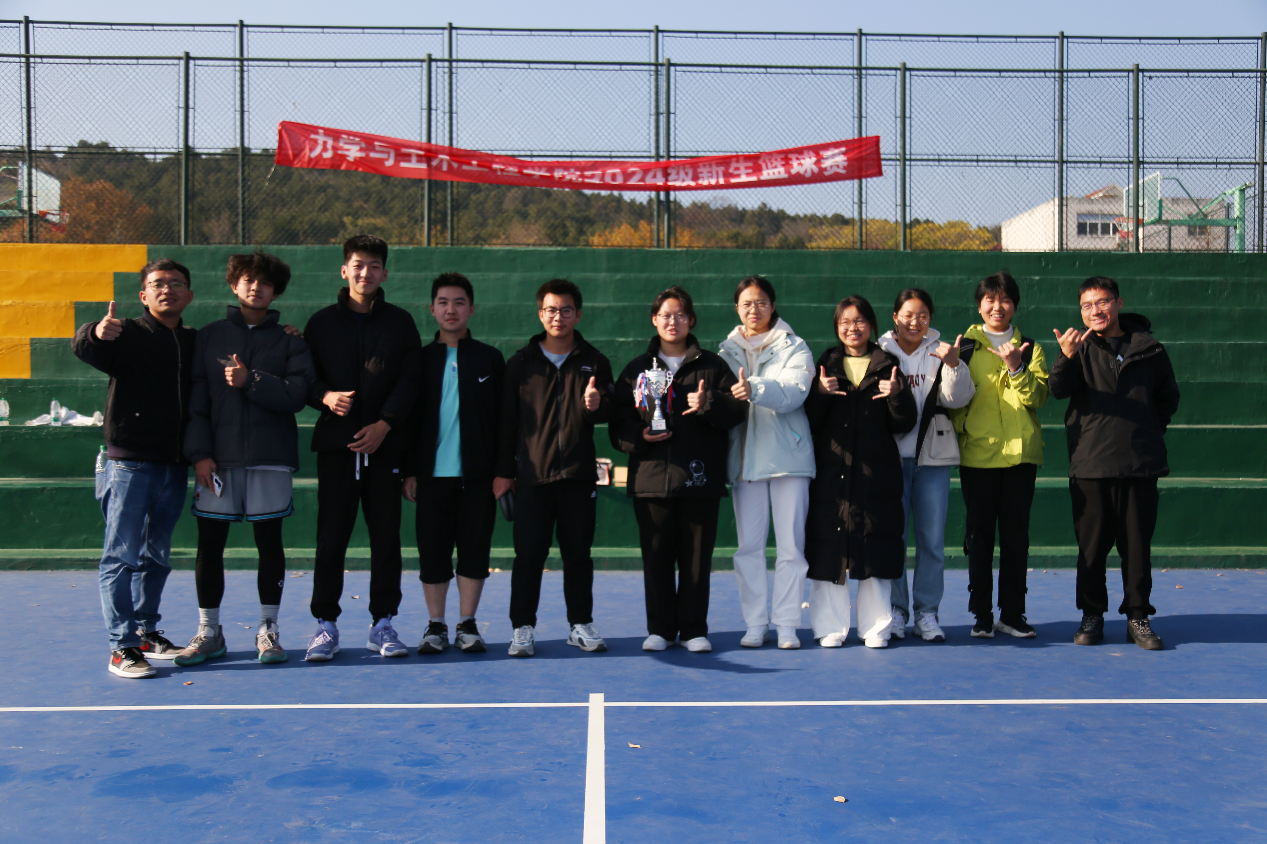 2024级新生篮球赛的决赛在桃苑篮球场如期举行,游洋老师、徐海超老师、谢涵老师以及24级篮球赛运动员参加。