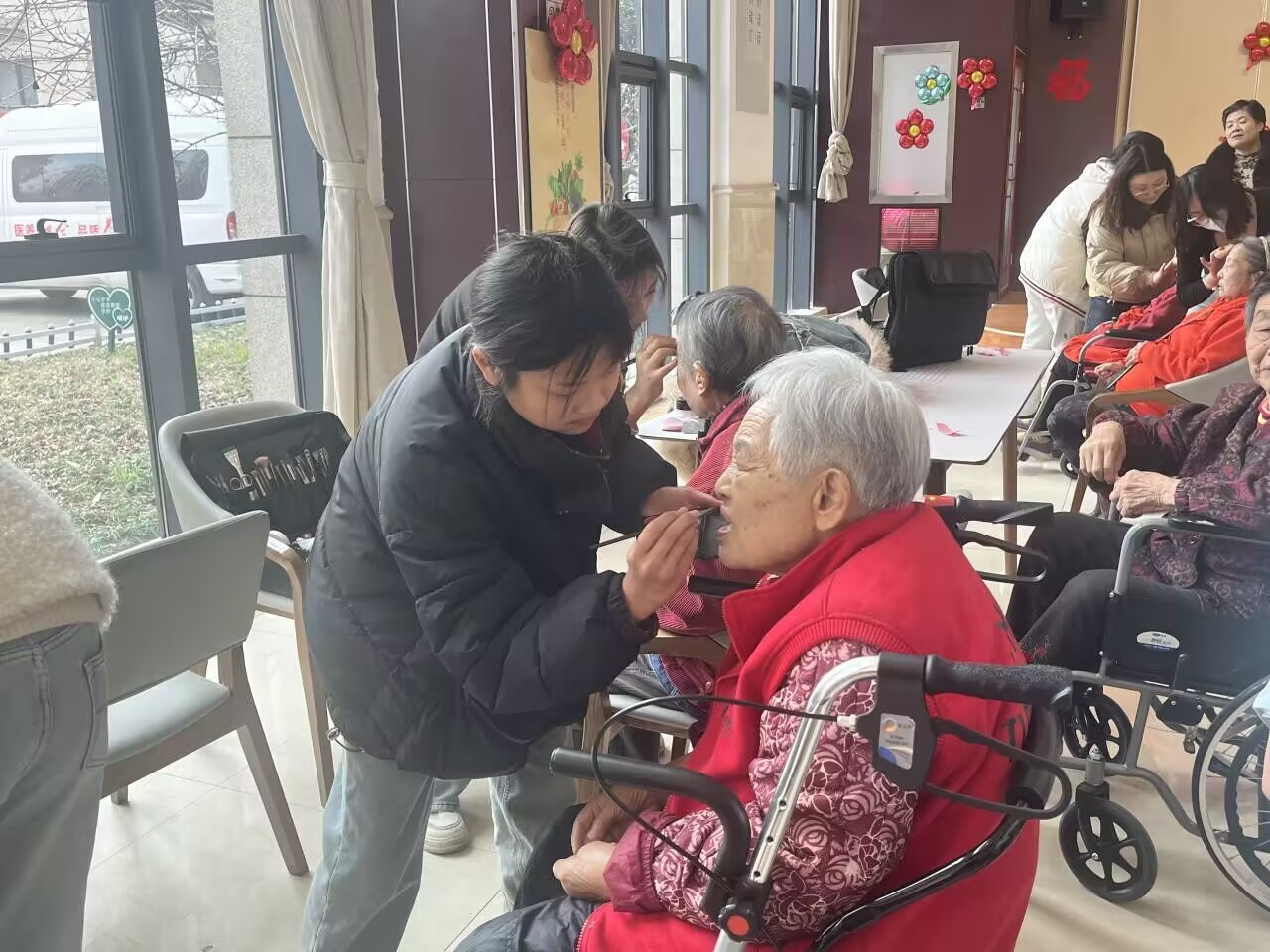 活动中,志愿者们与老人们亲切互动,化妆组成员与老人们亲切沟通,为她们精心化妆,并拍摄照片,为老人们留下美好而珍贵的回忆。摄影组志愿者们用相机记录下这些温馨瞬间,镜头里不仅有老人们美丽的容颜,更有她们内心的喜悦与满足。