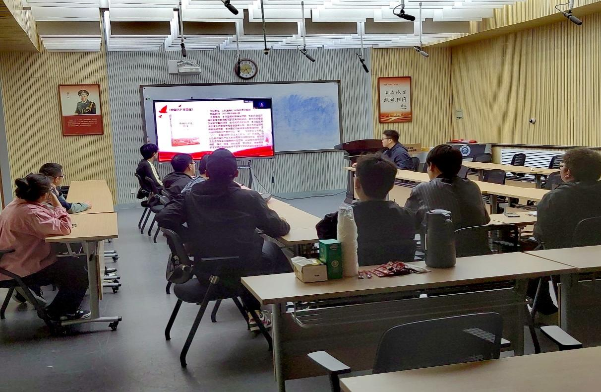 本次活动围绕习近平总书记在参加江苏代表团审议时提出的“打头阵、勇争先、走在前、做示范”重要要求开展深入学习。支部书记周宇带领支部成员学习习近平总书记重要讲话精神,强调青年党员要主动对标要求,在科研创新与社会服务中争当先锋,从党的光辉历程中汲取智慧,在赓续红色血脉中锻造担当,以知行合一的实干精神投身科研攻关与社会服务,用“强国有我”的青春誓言擦亮新时代共产党员的先锋底色,奋力书写无愧于党和人民的新时代答卷;支部委员方亚琦分专题系统讲解党史学习的重要性、新文化运动与五四运动的启蒙作用、中共一大至七大的革命道路探索历程及《中国共产党简史》核心要义,以思想碰撞凝聚前行力量,以历史观照锚定奋斗坐标。在自由交流环节,党员们结合学科背景,就“如何将党史学习成果转化为践行‘走在前、做示范’的行动力”展开热议,一致表示要以思想自觉引领行动自觉,在强国建设中贡献青春力量。