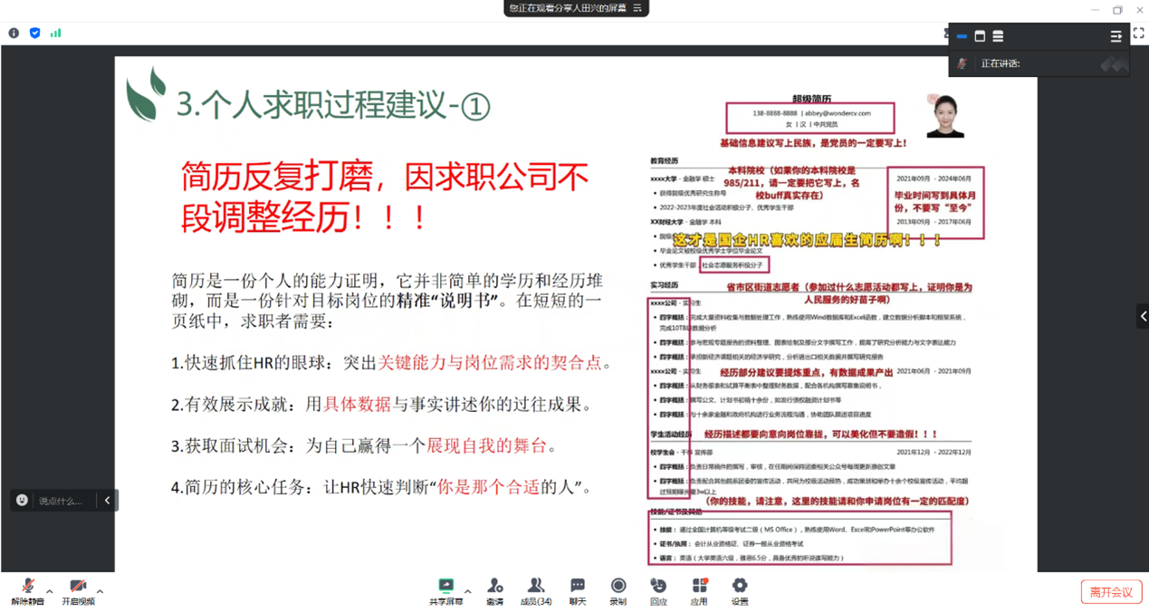 此次就业知识分享会为学生提供了与专家和前辈交流的机会,使学生对就业相关知识有了更全面的了解,也为学生的职业规划与个人发展提供了参考,助力他们在学业与职业道路上稳步前行。