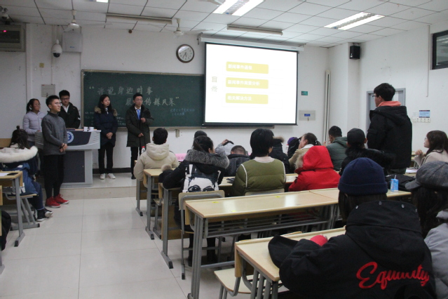 大学生传媒中心在博四C108举办“评说身边时事,展现传媒风采”采访大赛。本次比赛共有34支队伍参加,12组队伍进入决赛。