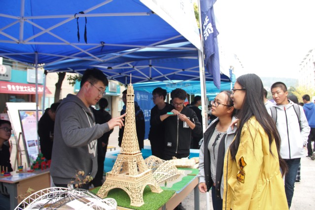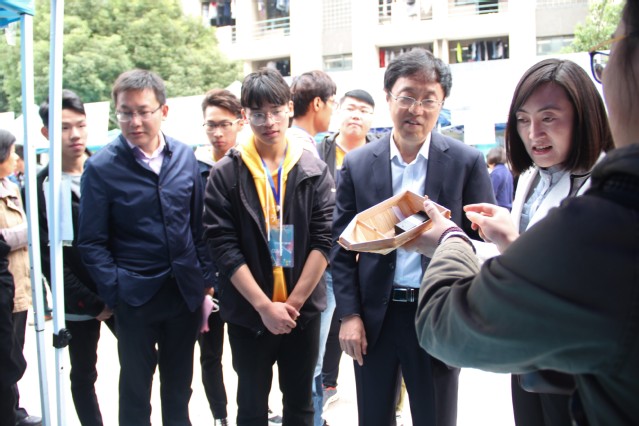 创协的展览品前曹德欣书记驻足观看,仔细倾听了创协成员关于模型结构设计理念的介绍,并对同学们学以致用的创新能力提出表扬。