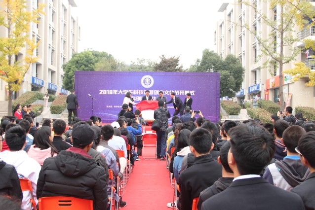 上午十时,开幕仪式正式开始。首先由陈文老师与纪承老师简要介绍了科创文化节活动方案、“挑战杯”课外学术科技竞赛的实施方案、校园“创新创业之星”寻访及巡讲活动方案,徐黎华老师、钟晓东老师分别宣读“青创广场”2018-2019学年度入园项目2018年国家级大学生创业训练与创业实践项目立项名单。随后袁迎菊老师为“青创广场”入园项目团队代表颁发入园许可证。校党委副书记曹德欣为2018年国家级大学生创业训练与创业实践项目颁发立项证书。最后参加开幕式的嘉宾共同启动2018年大学生科技创新文化节。