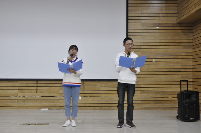 语言类比赛以朗诵的形式展开,仅有3个参赛组,从朗读者口中飘出的一篇篇文章就像一屡春风,吹进了在座每个人的心中。