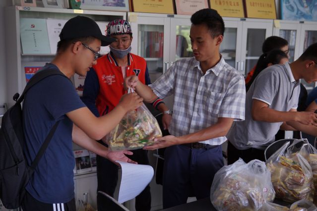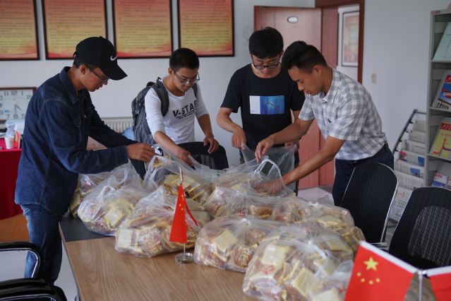 的心意,并领取月饼。各班班长都自觉地排队领取,在接过精美的月饼后十分欣喜,纷纷对路铭老师和党站的同学表示感谢,并为他们也送上了中秋祝福。在发放月饼的同时,路铭老师为各个班级一一送去祝福,并让各位班长代为转达。活动期间,路铭老师还与同学们互相交流,询问各位同学能否适应大学生活,并对部分同学们的困惑进行了解答,叮嘱同学们遇到问题一定要及时与老师沟通。